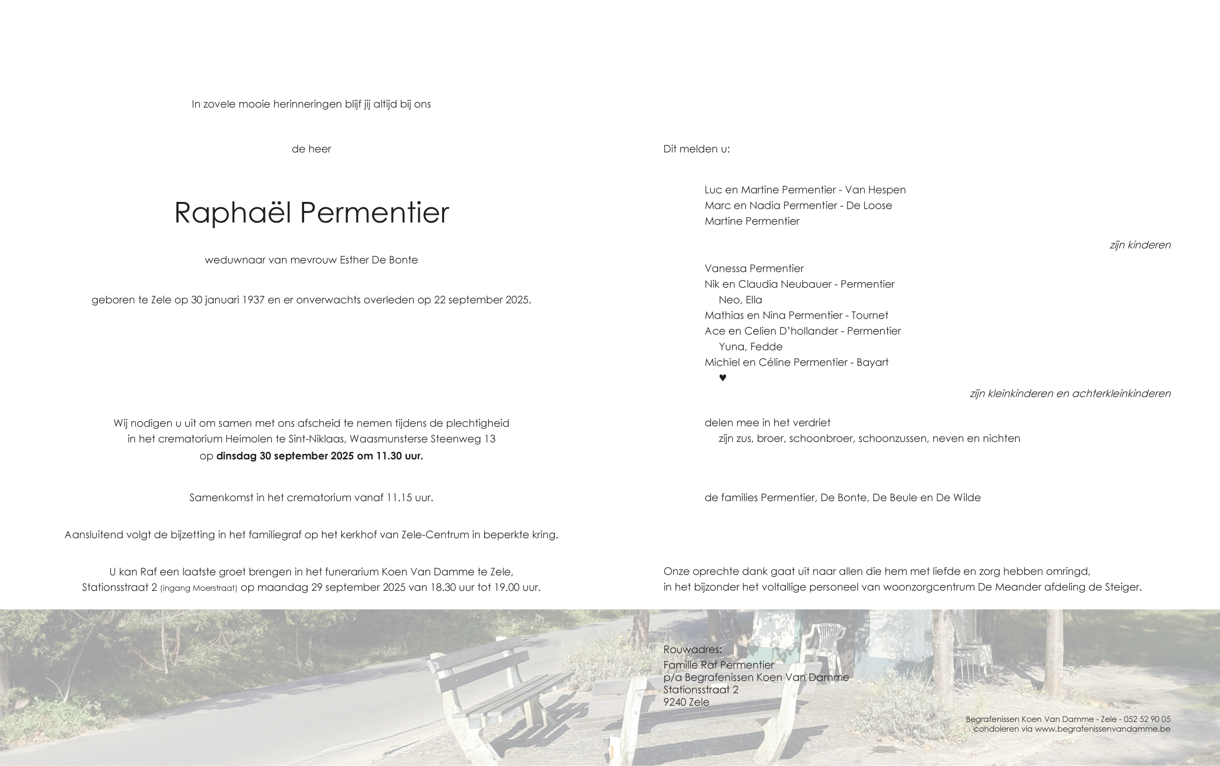 Overleden te Zele (9240) op maandag 22 september 2025 op 88-jarige leeftijd