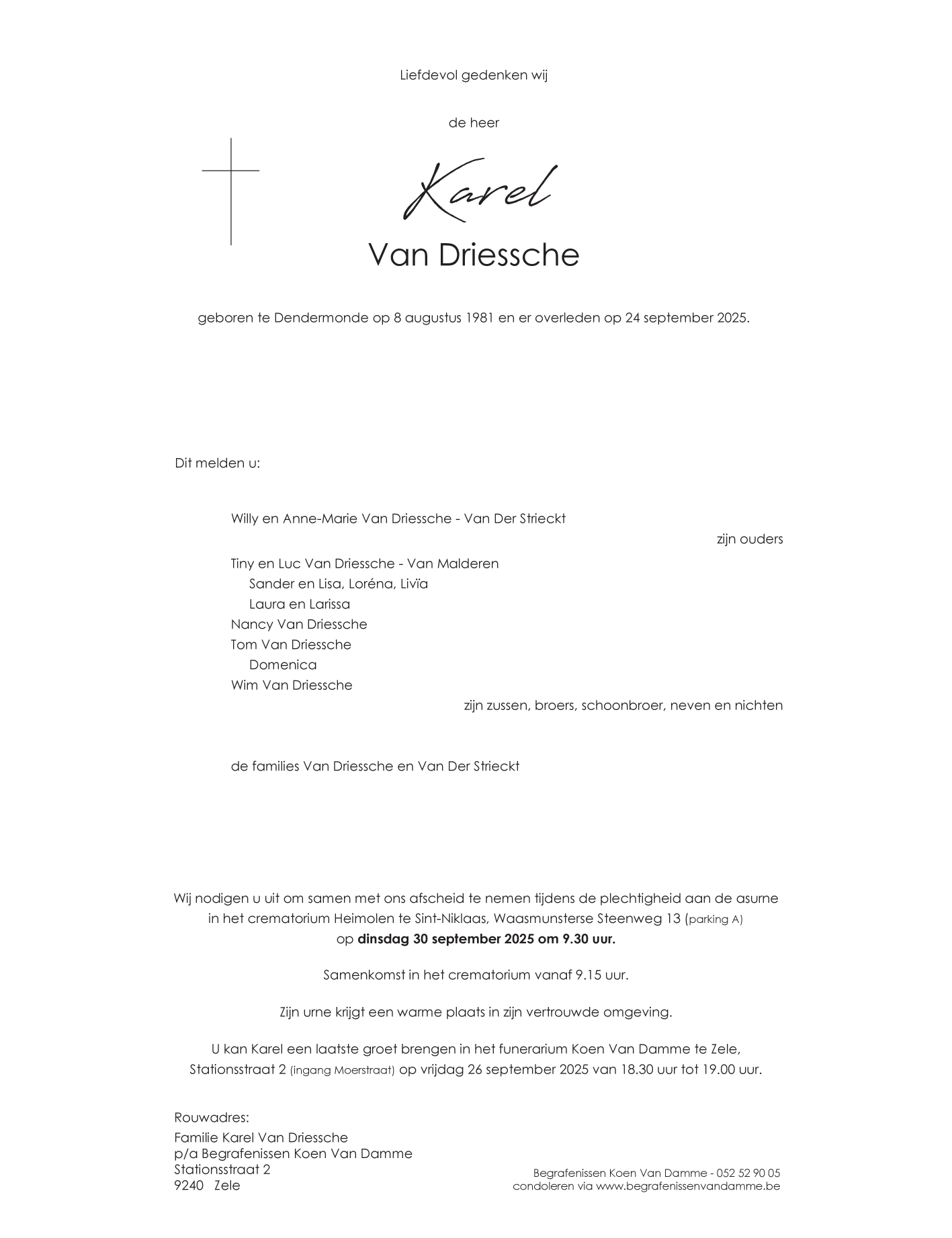 Overleden te Dendermonde (9200) op woensdag 24 september 2025 op 44-jarige leeftijd