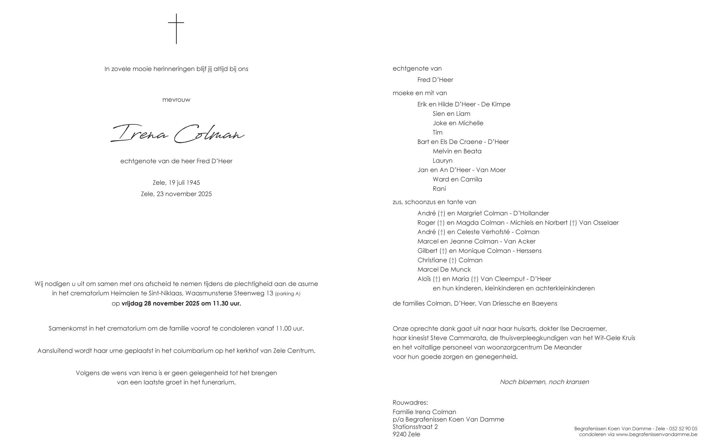 Overleden te Zele (9240) op zondag 23 november 2025 op 80-jarige leeftijd