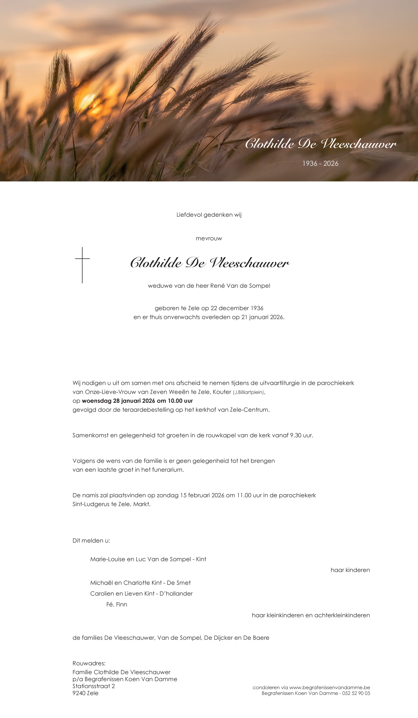 Overleden te Zele (9240) op woensdag 21 januari 2026 op 89-jarige leeftijd