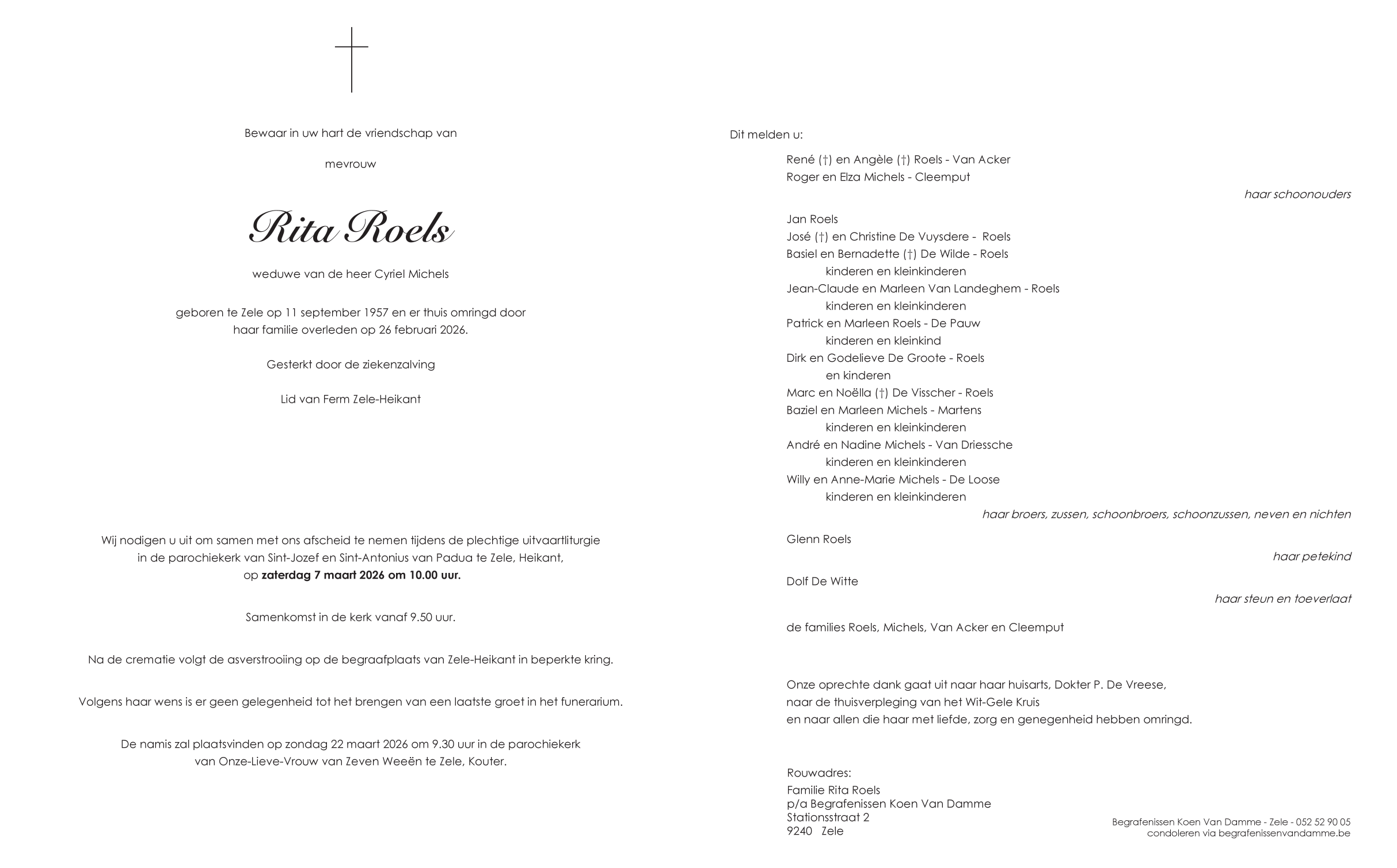 Overleden te Zele (9240) op donderdag 26 februari 2026 op 68-jarige leeftijd