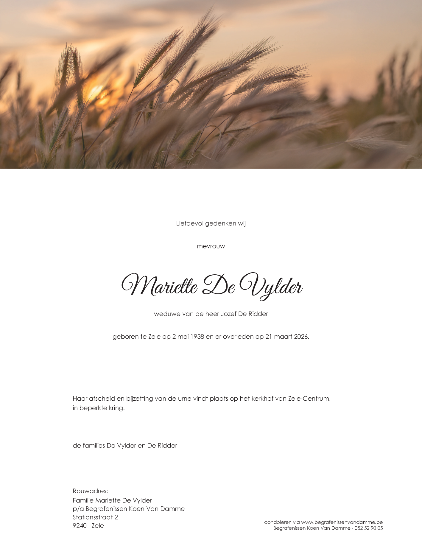 Weduwe van Meneer Jozef De Ridder