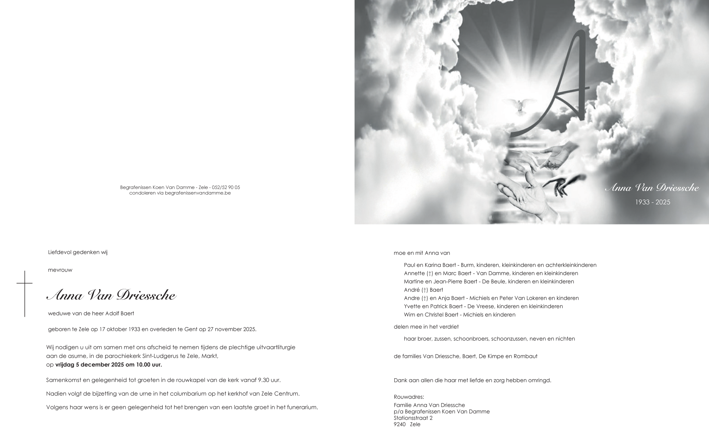 Overleden te Gent (9000) op donderdag 27 november 2025 op 92-jarige leeftijd