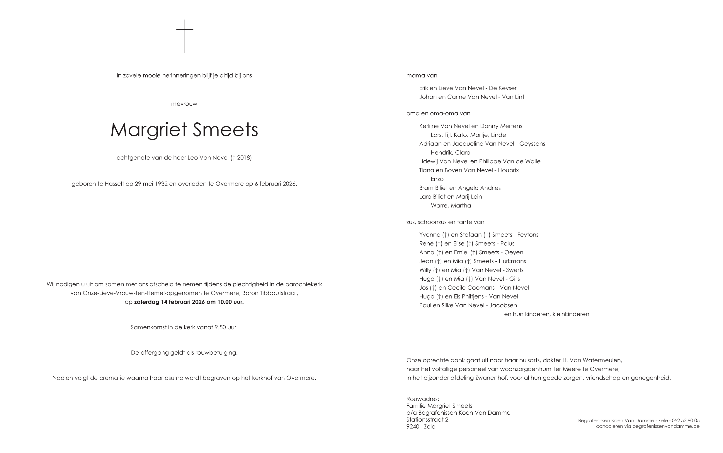 Overleden te Overmere (9290) op vrijdag 6 februari 2026 op 93-jarige leeftijd