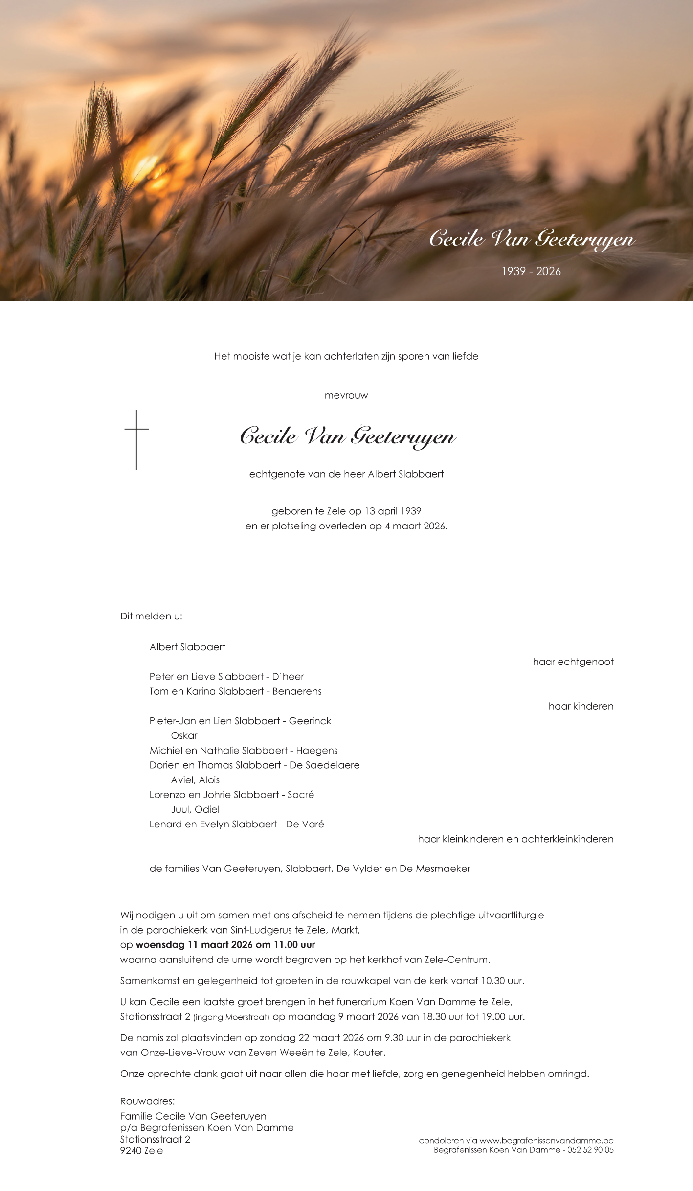 Overleden te Zele (9240) op woensdag 4 maart 2026 op 86-jarige leeftijd