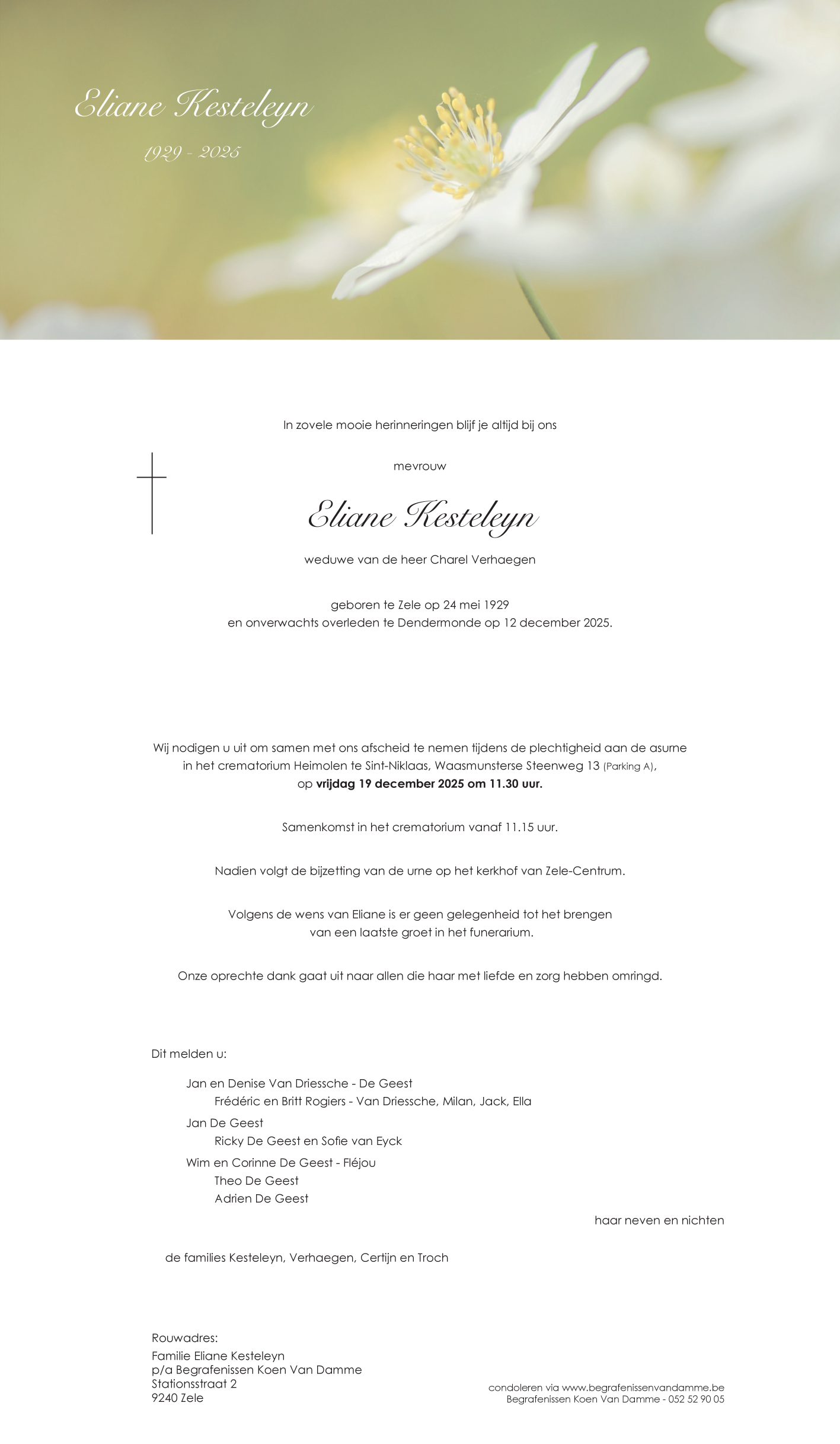 Overleden te Dendermonde (9200) op vrijdag 12 december 2025 op 96-jarige leeftijd