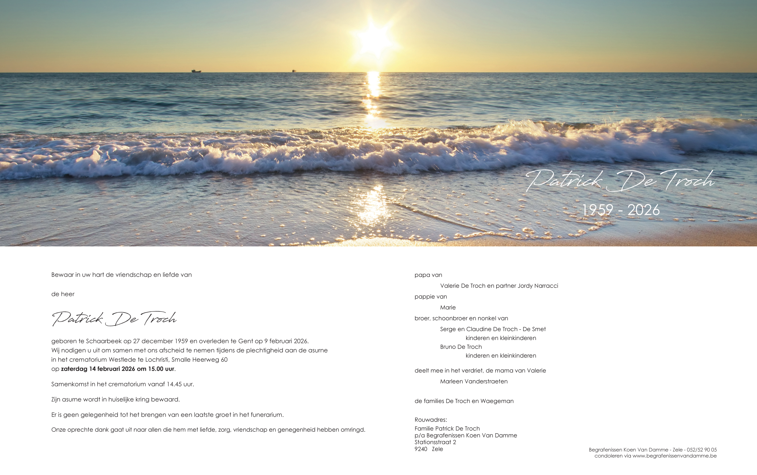 Overleden te Gent (9000) op maandag 9 februari 2026 op 66-jarige leeftijd
